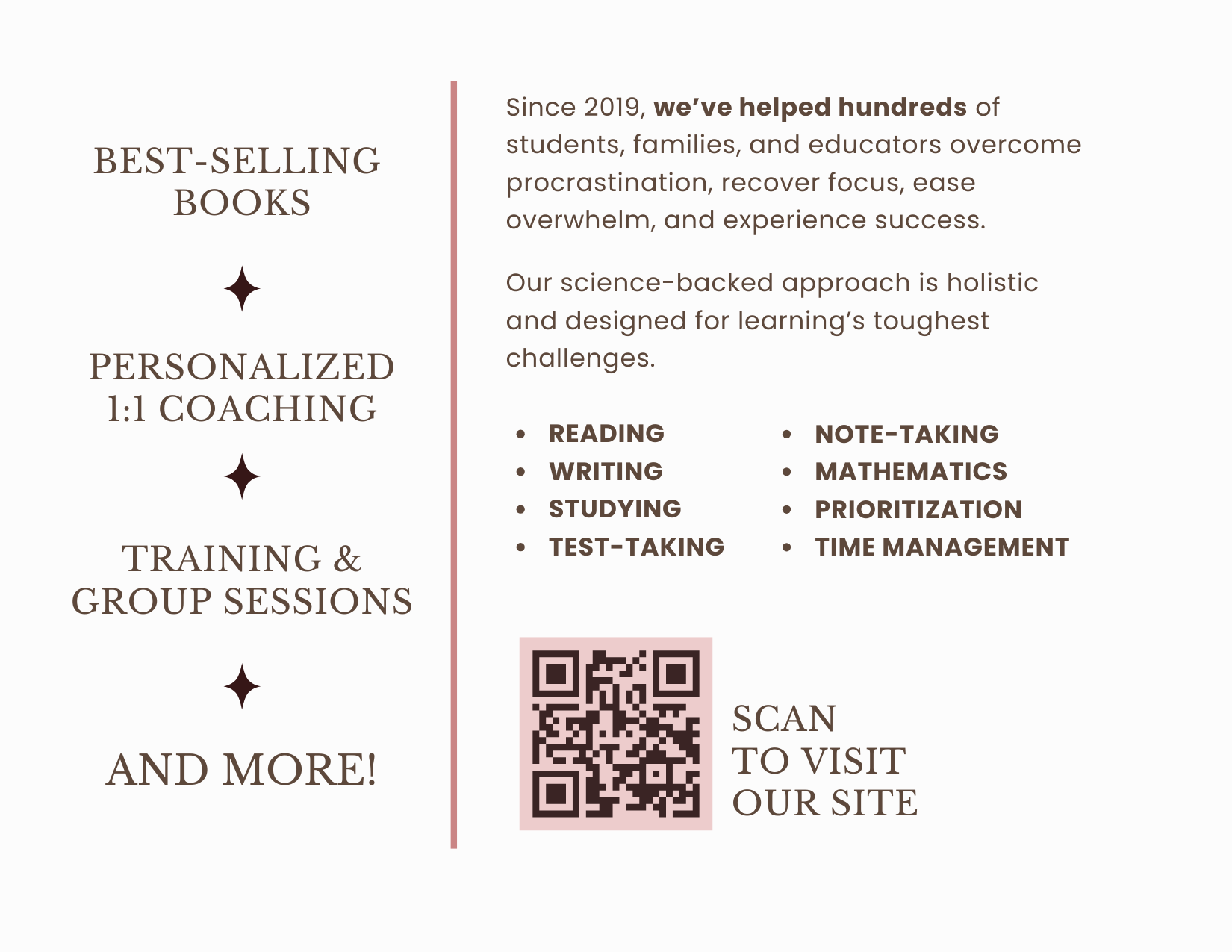Visitors should be able to quickly pick up on the unique traits that set Awakened Learning apart. We want them to easily find their way to scheduling appointments, registering for workshops, or purchasing products depending on their preference.